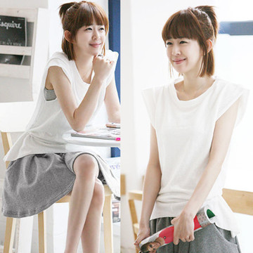 大碼純棉無袖工字背心春夏運動圓U領(lǐng)低胸修身性感小吊帶女打底衫 /