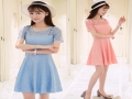 2016夏季新款女裝收腰顯瘦修身圓領蕾絲短袖打底連衣裙 /