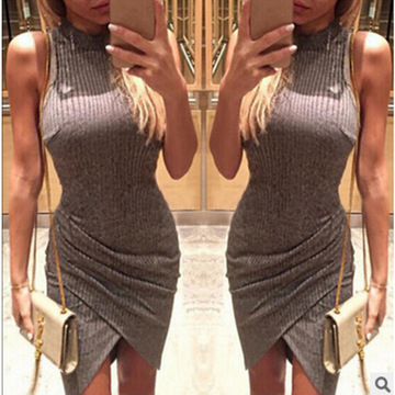 新款女裝 無袖不規(guī)則包臀連衣裙 /