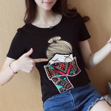 2016夏季韓版修身顯瘦卡通印花短袖t恤女圓領(lǐng)學(xué)生百搭打底衫潮 /