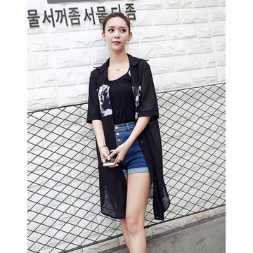 2016年實拍夏季新款韓版中長款氣質百搭超薄夢露印花雪紡衫防曬衣 /