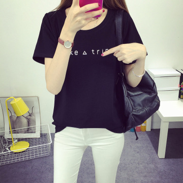 2016夏季新款時尚潮流百搭大碼純色字母短袖T恤女 /