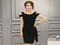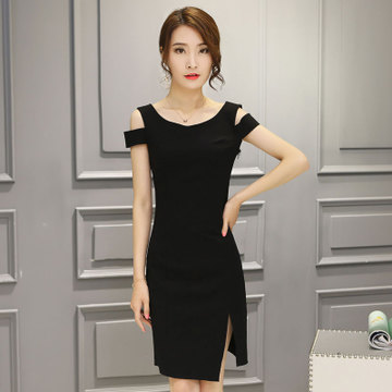 2016歐美高端大牌時尚露肩加大碼中長款后V領性感包臀連衣裙 /