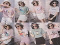 (實拍)2016新品印花竹節純棉打底衫女寬松圓領短袖T恤 /