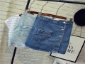 經(jīng)典百搭款 韓版大口袋排扣高腰復古牛仔半身裙 純棉水洗牛仔短裙 /