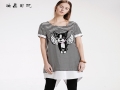 油畫日記2016原創女裝新款連衣裙亮片釘珠拼接條紋上衣一件代發 /