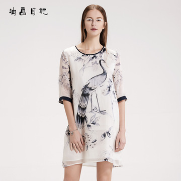 油畫日記2016女裝原創精品夏裝旗袍連衣裙印花盤扣真絲一件代發 /