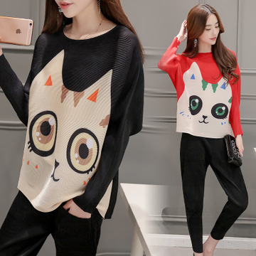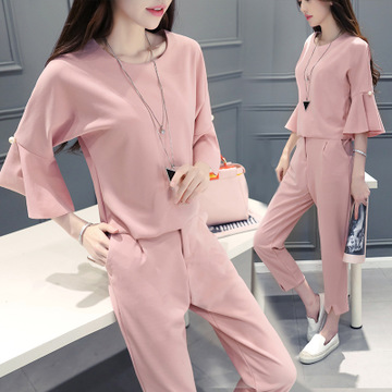 2016春裝新款韓版休閑時(shí)尚套裝女荷葉邊喇叭袖上衣 九分褲兩件套 /