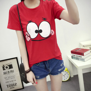 夏裝新款韓版大碼寬松打底衫卡通印花短袖女棉t恤一件代發 /