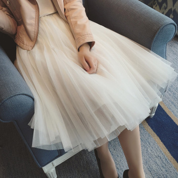 2016夏裝女裝新款韓版唯美淑女百搭網紗蓬蓬半身中裙 /