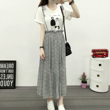 2016夏裝新款韓版 小碎花雪紡 背帶裙 背帶連衣裙 長裙 沙灘裙 /