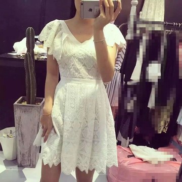 韓國氣質(zhì)修身蕾絲百搭連衣裙紅棉白馬同步新款發(fā)售女裝批發(fā)2509 /