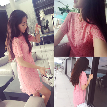 2016夏季 韓版修身蕾絲中長款收腰顯瘦長袖連衣裙 U44 /