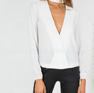 16056# 歐美外貿(mào)白色V領休閑性感不規(guī)則上衣襯衣 /
