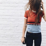 16053 BM同款歐美休閑撞色拼接條紋短袖T恤上衣 /