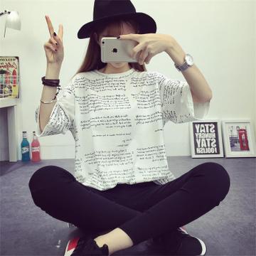 一件代發(fā)夏季新款韓版潮流大碼女寬松字母印花短袖T恤 女廠價(jià)批發(fā) /