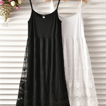 金百合女裝春夏韓版繡花寬松大碼高腰打底裙背心吊帶裙網紗連衣裙女 /