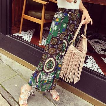 2016韓版性感開叉雪紡碎花沙灘半身長裙女 /