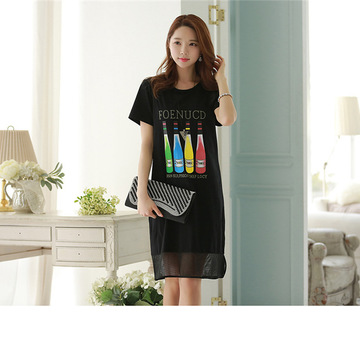 2016夏季新款韓版個性女裝網紗露背拼接黑色顯瘦流行連衣裙 /