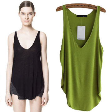 Wish速賣通亞馬遜EBAY 外貿原單 糖果色莫代爾純棉大V領低胸百搭 /