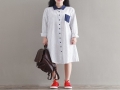 新款文藝森女中長款寬松百搭學院風長袖條紋襯衫大碼襯衣裙 /