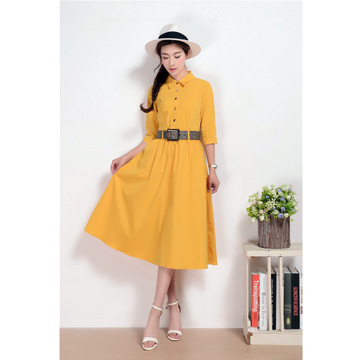 2016新款夏季休閑大擺中長連衣裙簡潔大方純色女裝淘寶一件代發 /