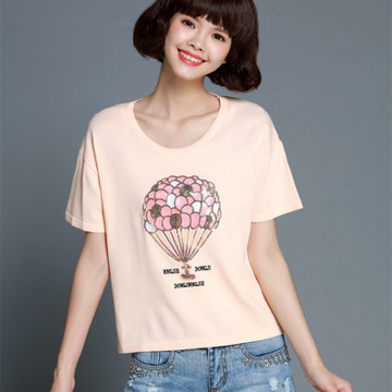 新品短袖t恤女夏季韓國青年學(xué)生印花卡通圓領(lǐng)寬松針織簡約體恤衫 /