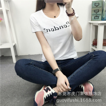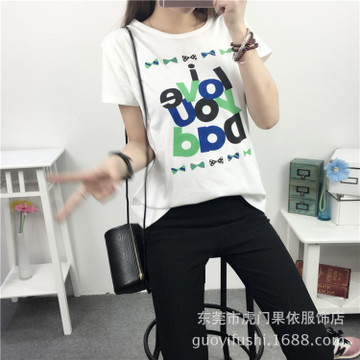 短袖印花T恤女1688女裝批發特價 夏季 純棉圓領韓版女式字母T恤 /
