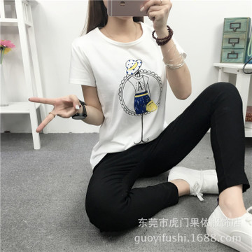卡通特價短袖純棉T恤女 圓領女式T恤外貿韓版學院女裝 廠家直銷 /