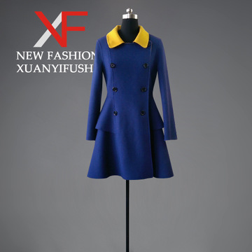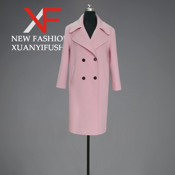 春秋冬新款雙排扣手工羊絨方領歐美修身中款雙面呢羊毛大衣外套女 /