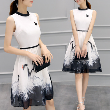 韓國東大門新款夏裝高腰裙中長款氣質(zhì)無袖雪紡連衣裙阿里批發(fā) /