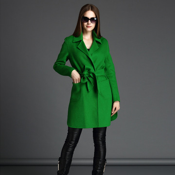 預(yù)售秋冬新款西裝領(lǐng)羊絨大衣綠色大衣毛呢外套中長款女歐美 /