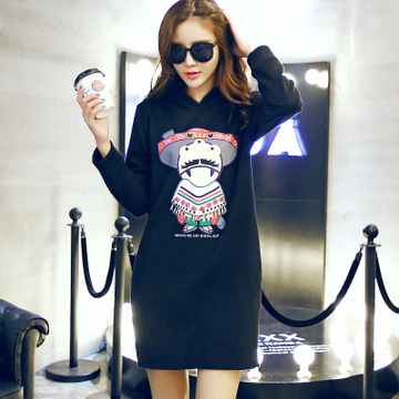 實拍新款韓版學生連帽套頭寬松抓絨中長款可愛百搭衛衣女秋冬 /