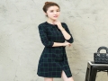 秋裝新款女裝韓版修身格子長袖裙子中長款打底連衣裙女 /