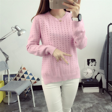 秋冬新款韓版針織衫長袖鏤空套頭洞洞毛衣打底衫女 /