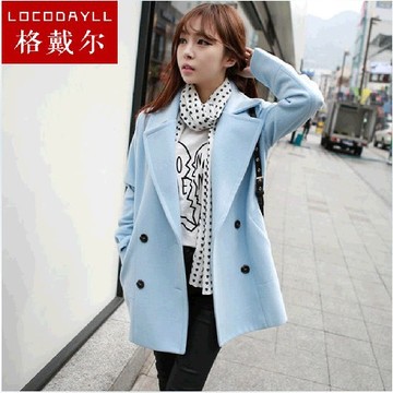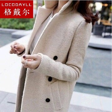 冬裝韓版羊絨毛呢外套女雙排扣中長款修身顯瘦羊毛呢子大衣女 /