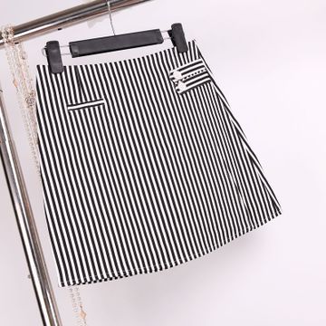 實拍 夏裝新款小清新百搭條紋小短裙雙粒扣條紋半身裙女A字裙 /