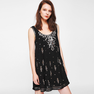 夏季新款歐美風 珠片刺繡 亮片裝飾 黑色背心 吊帶短裙連衣裙 /