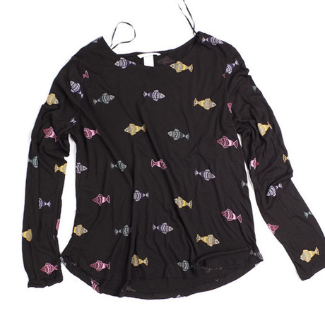 原單莫代爾長袖女T恤彩色魚印花女士上衣打底衫體恤一件代發 /