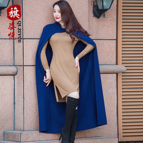 秋季新款針織開衫披肩 高端澳洲羊毛旗袍大衣加長款外套 /