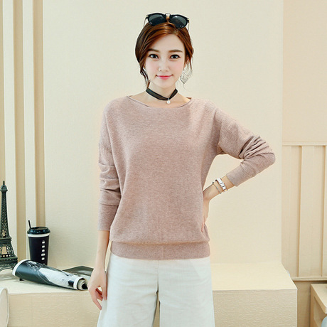 秋冬新款韓版針織衫女套頭長袖加厚一字領毛衣外套百搭修身打底衫 /