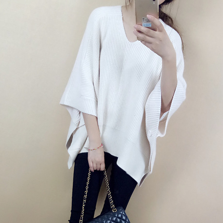 一件代發秋冬新款100%貂絨毛衣女套頭寬松鏤空韓版女裝蝙蝠衫 /