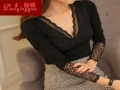 秋冬女神薄款蕾絲花邊打底衫女純色上衣蕾絲小衫百搭V低領長袖t恤 /