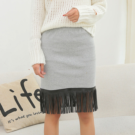 韓版女裝秋冬新款半身裙針織流蘇包臀裙女式百搭裙流蘇裙廠家直銷 /