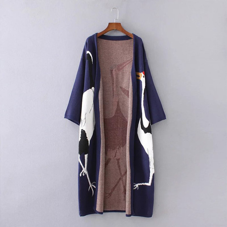 長款仙鶴開衫毛衣 /