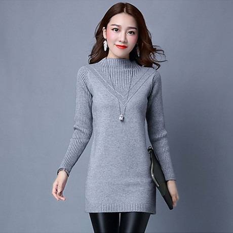 虎妞-半高領中長款毛衣 /