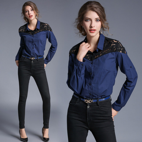 好依匯-拼接牛仔襯衫 /